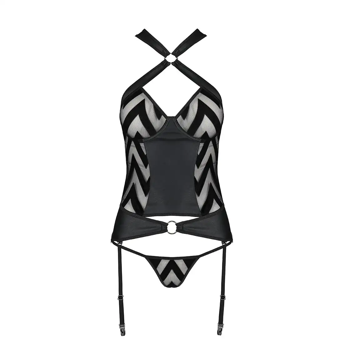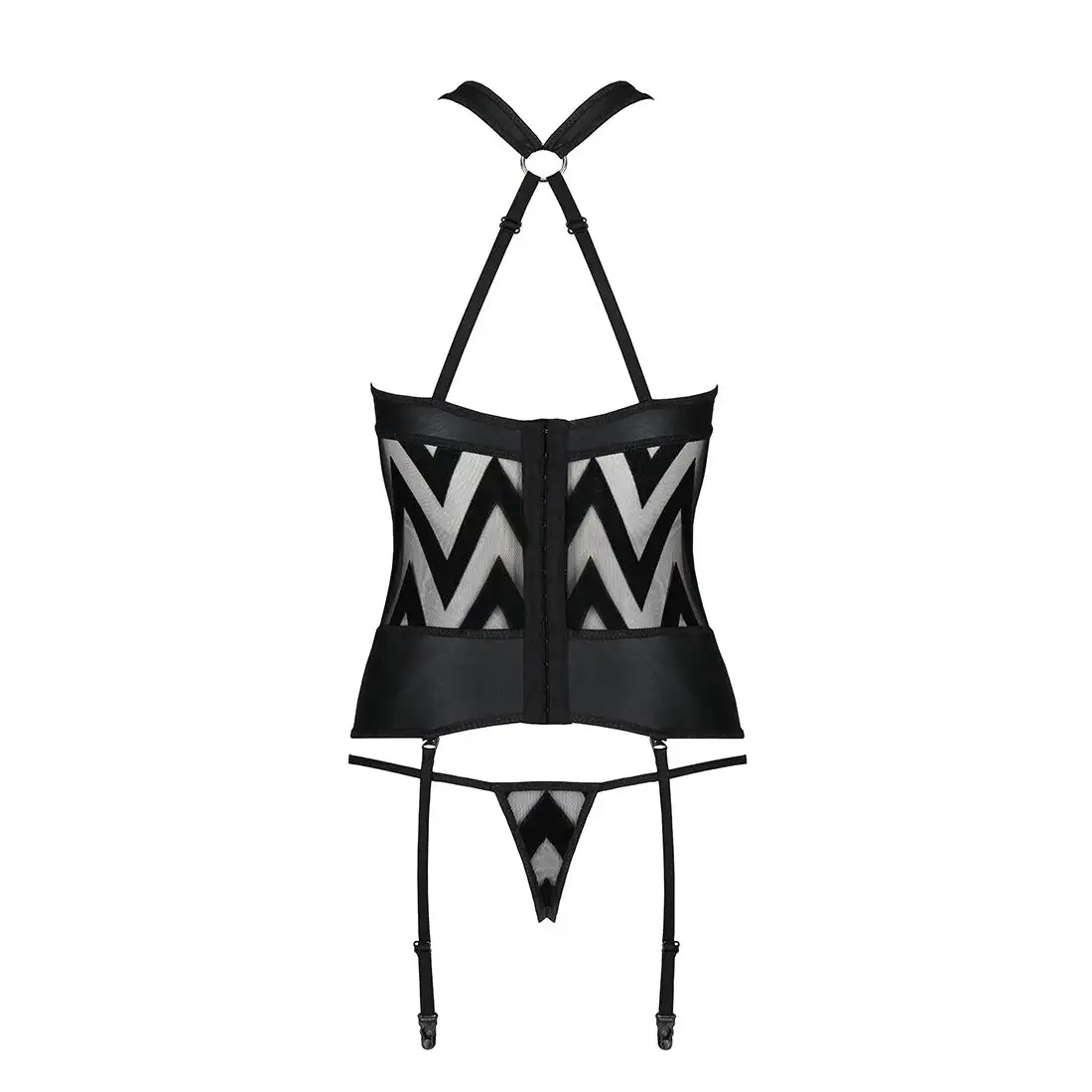 Сетчатый комплект с узором: корсет с халтером, подвязки, трусики Hima Corset black XXL/XXXL-Passion