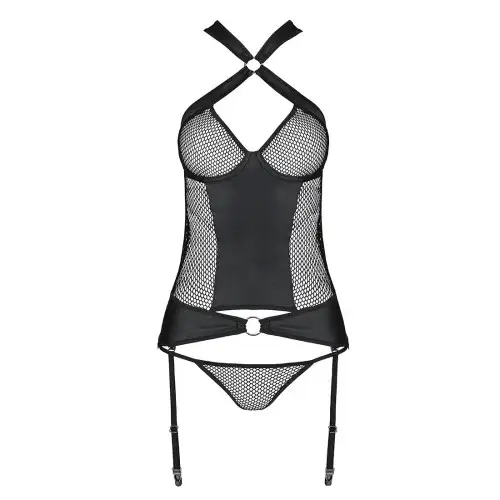 Сетчатый комплект корсет с халтером, съемные подвязки и трусики Amanda Corset black S/M - Passion