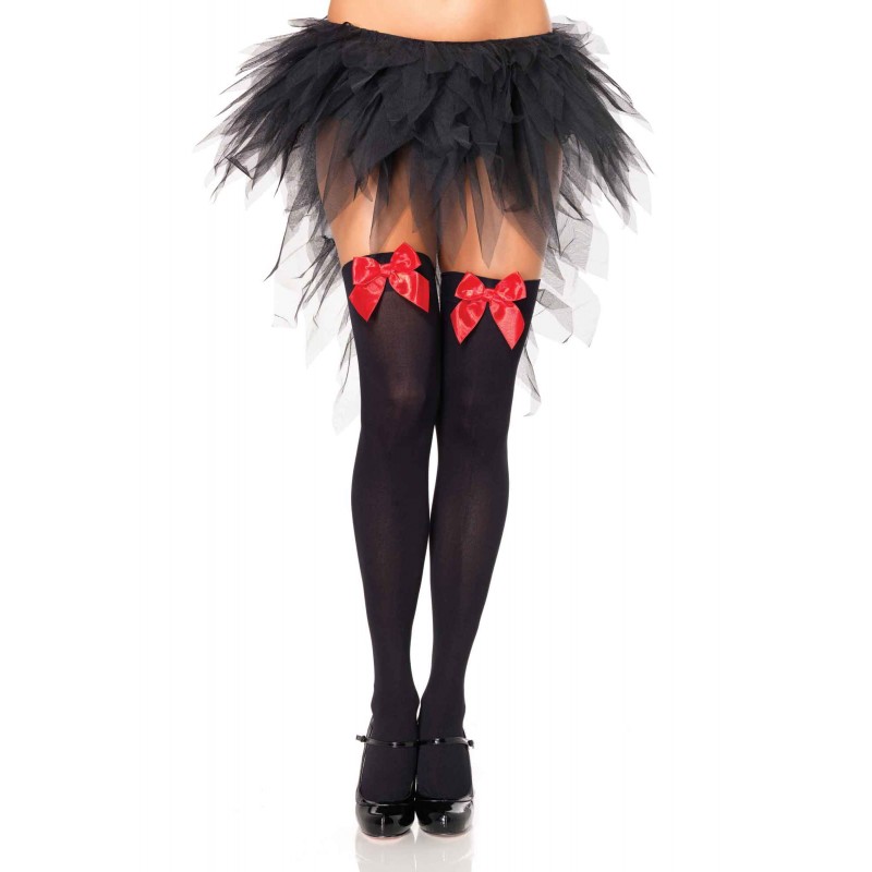 Чулки Leg Avenue черные с красным бантом