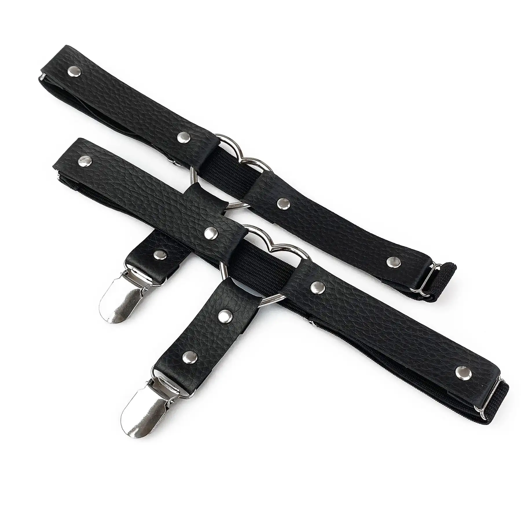 Каждый комплект включает в себя два пояса для чулок, которые регулируются для разных типов телосложения. Элегантный и сексуальный дизайн украшен серебристой фурнитурой, которая добавляет нотку изысканности любому наряду.