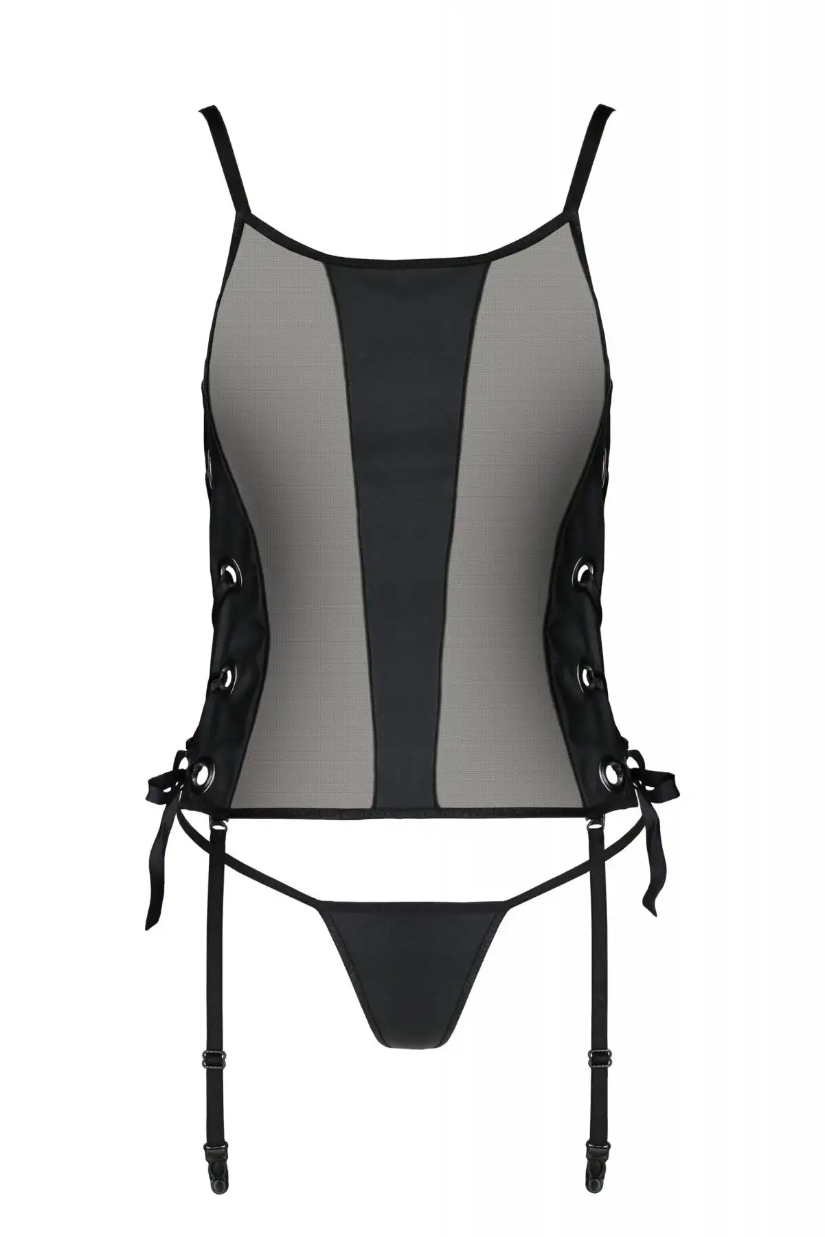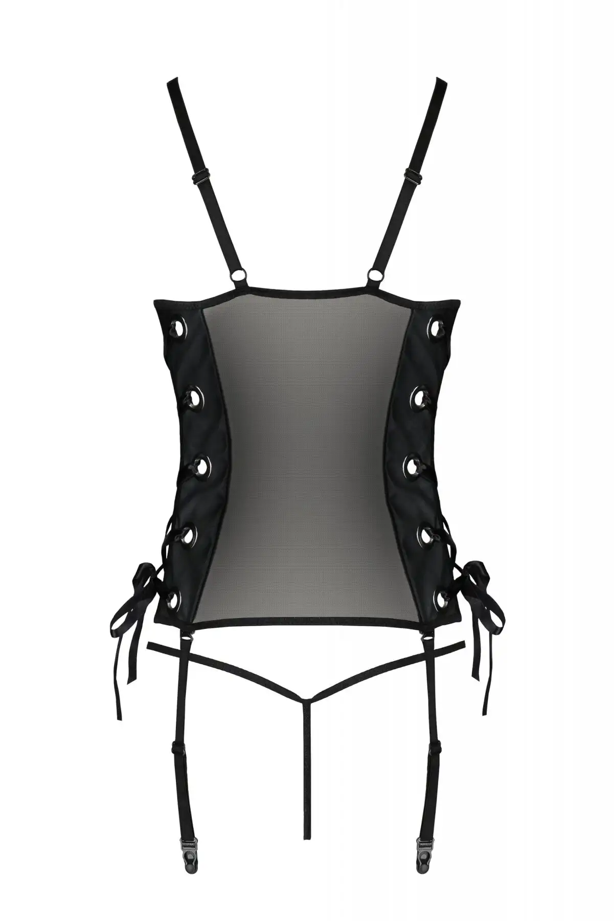 Сетчатый корсет из экокожи Passion Malwia Corset 6XL/7XL black, с люверсами и съемными пажами