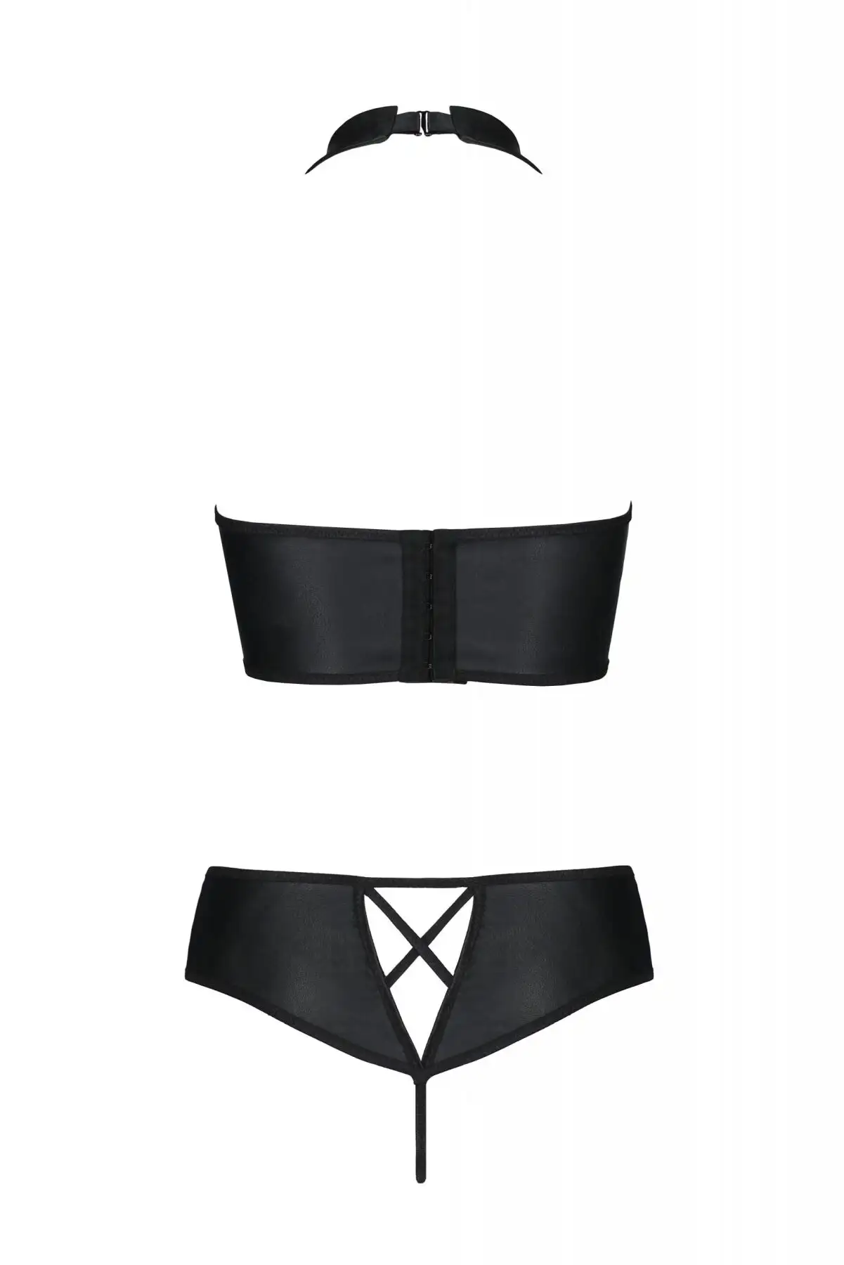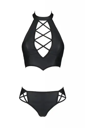 Этот комплект идеально подходит для тех, кто любит экспериментировать со своей коллекцией нижнего белья и хочет чего-то уникального и привлекательного. Материал из экокожи придает ему роскошный внешний вид, что делает его идеальным для особых случаев или интимных моментов с вашим партнером.