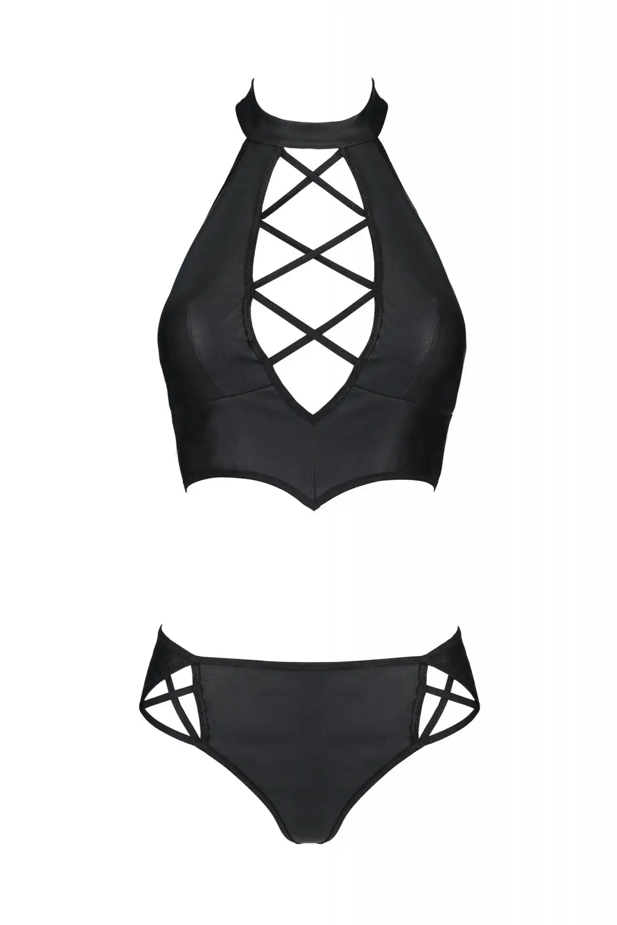 Комплект из экокожи Passion Nancy Bikini 4XL/5XL black, бра и трусики с имитацией шнуровки
