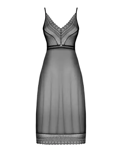 Полупрозрачная длинная сорочка Obsessive Estiqua chemise XL/2XL, черный, ассиметричный крой