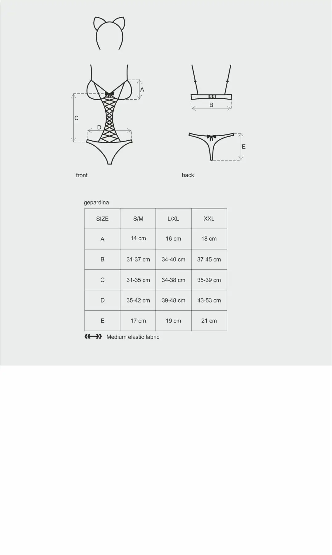 Этот костюм доступен в размерах S/M, что делает его идеальным для тех, кто носит размеры 4-8. Если вы хотите оживить свидание или удивить своего партнера чем-то новым, костюм Obsessive Gepardina из 3 предметов размера S/M обязательно произведет впечатление.