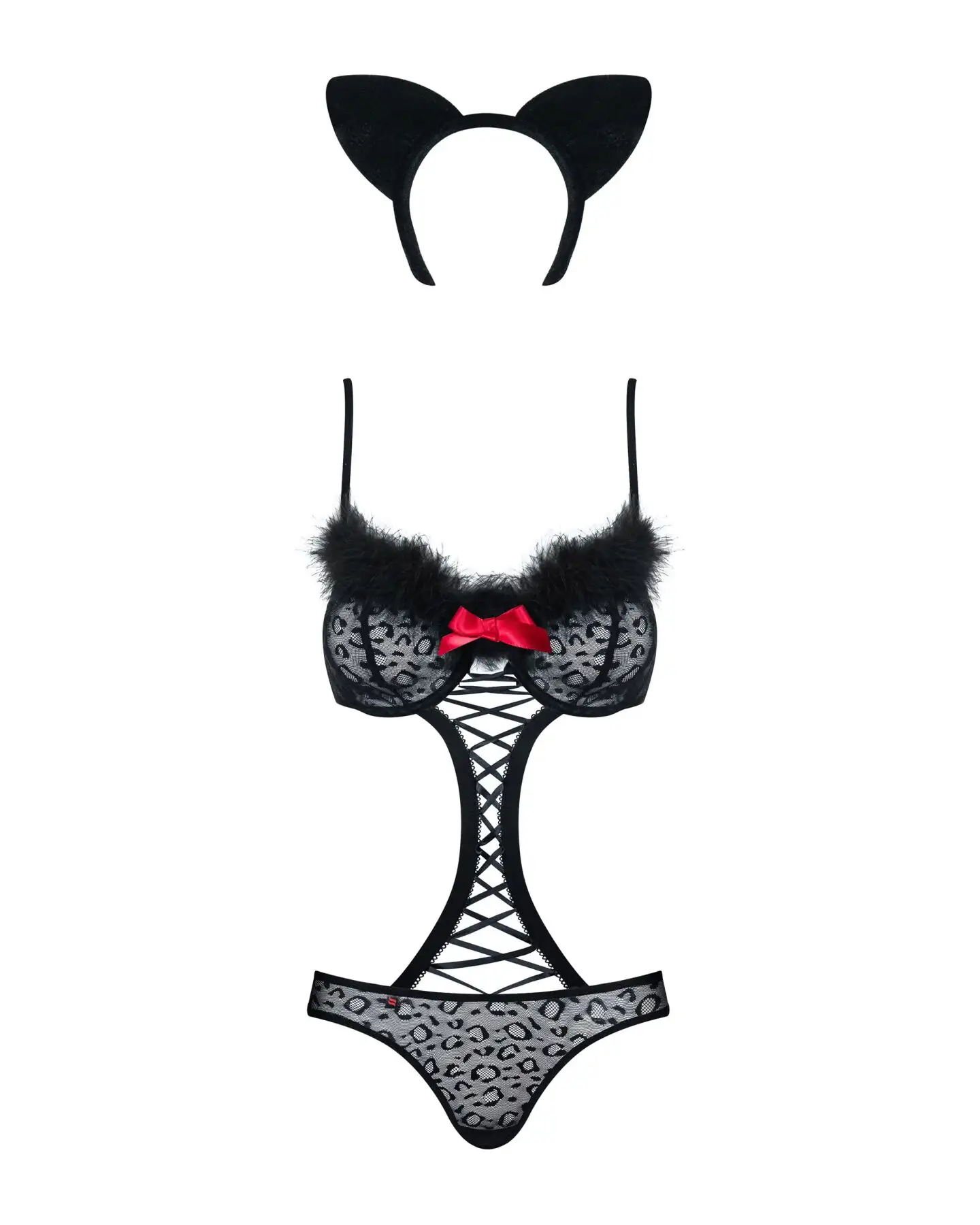 Эротический костюм гепарда Obsessive Gepardina 3 pcs costume S/M, черный, меховая отделка, монокини,