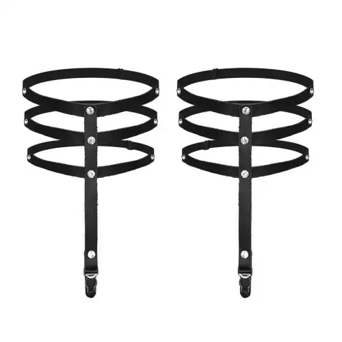 Гартеры со стразами Art of Sex - Floy, натуральная кожа, Размер XS - 2XL, цвет Черный