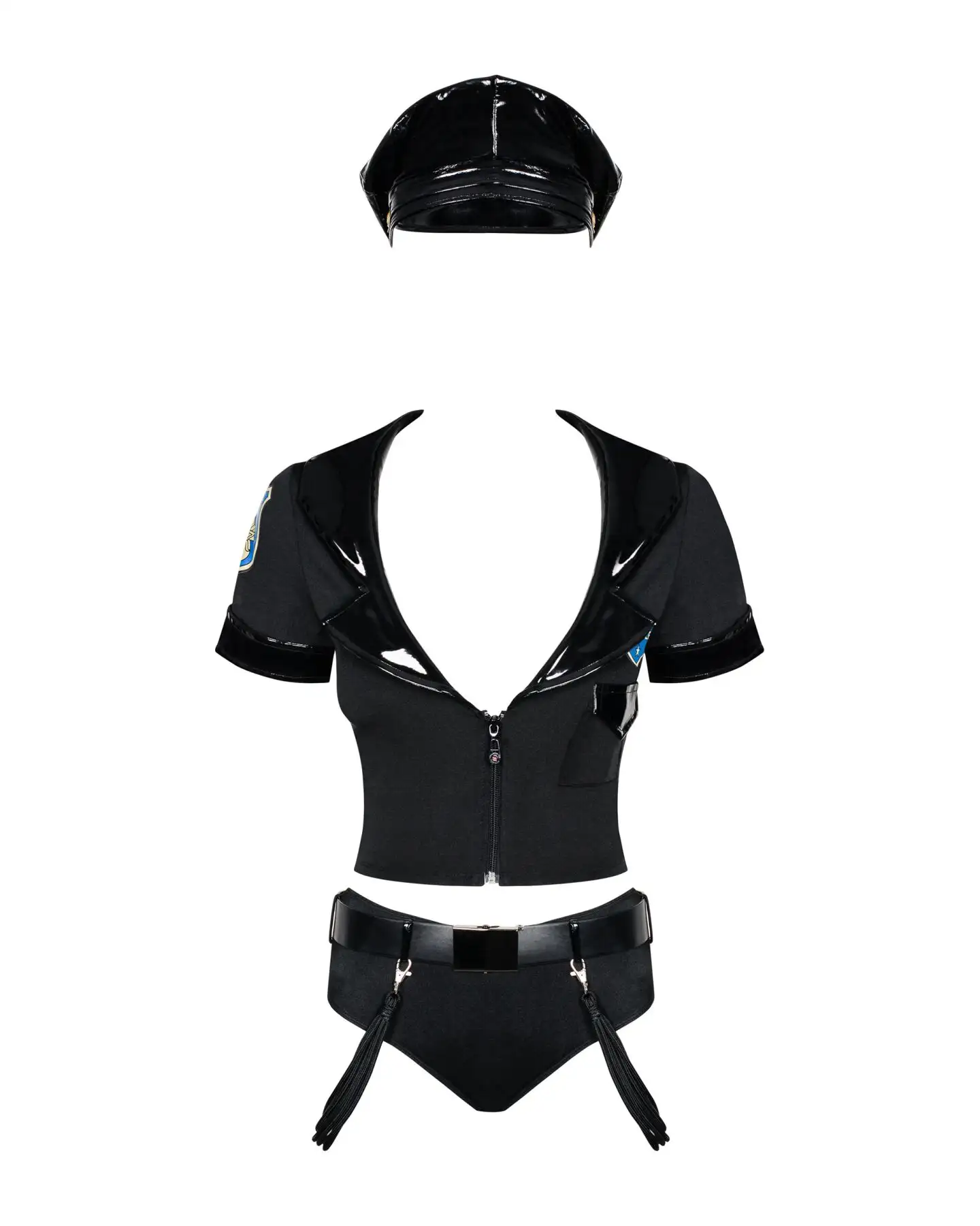 Эротический костюм полицейского Obsessive Police set S/M, black, топ, шорты, кепка, пояс, портупея