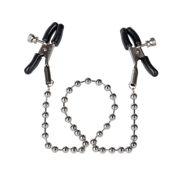 Если вы любитель БДСМ-игр, вы знаете какое наслаждение могут принести зажимы для сосков Nipple Clamps Silver Beaded. Данная модель снабжена специальными винтиками для регулировки сдавливания.