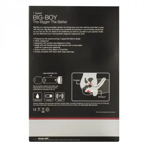 Основная идея массажера простаты Big-Boy (Rocks Off) звучит следующим образом: «Больше – лучше!» Именно эта фраза говорит о том, что данное интимное приспособление рекомендовано для мужчин, которые имеют практический опыт эксплуатации подобных устройств.