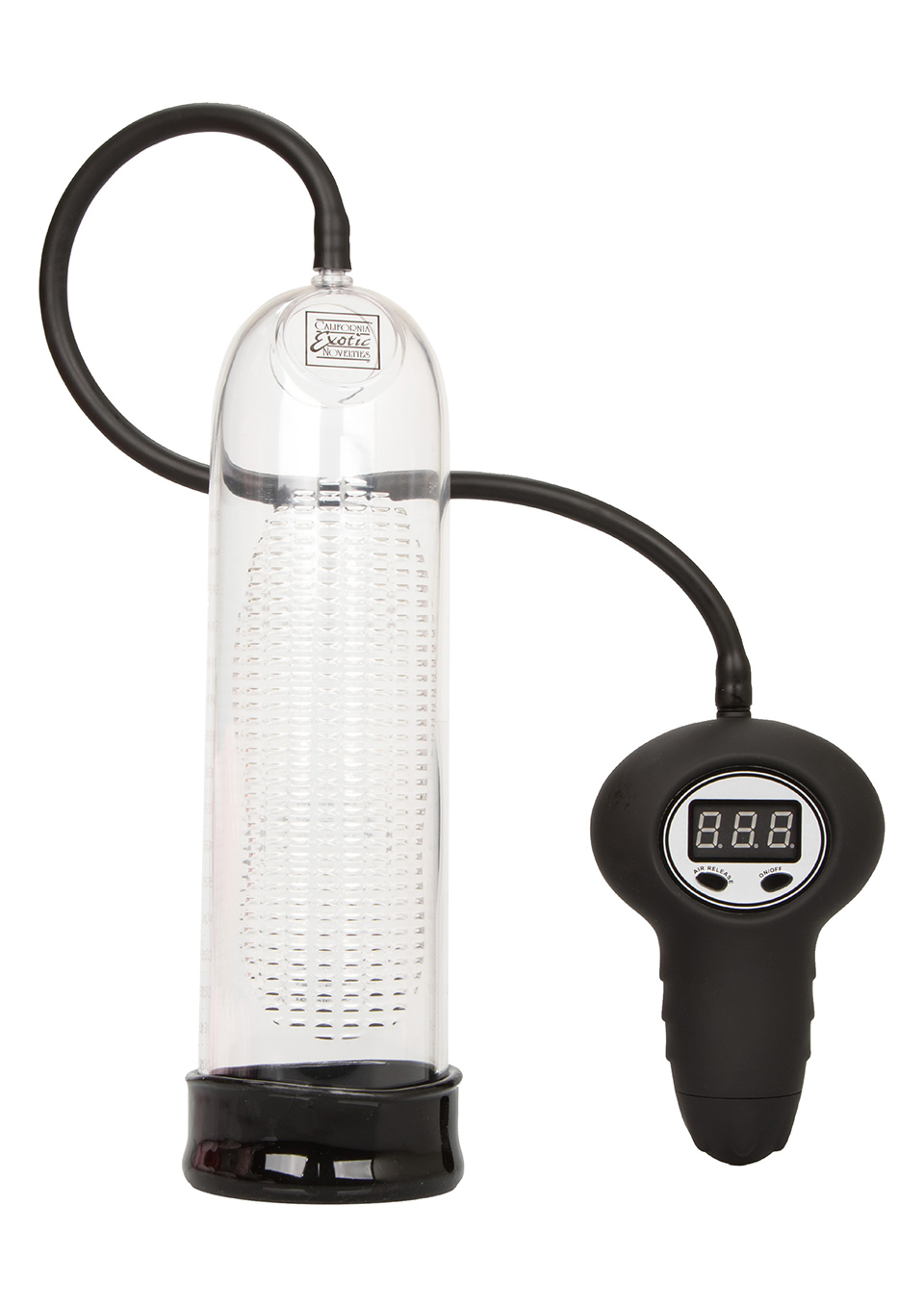 Автоматическая помпа для мгновенного увеличения члена. Имеет прозрачный цилиндр с размерной шкалой и ребристой внутренней поверхностью, дисплей для контроля уровня давления и кнопку для быстрого выпуска воздуха. Длина автоматической помпы - 25,5 см, диаметр - 6 см. Материал - силикон. Страна производитель - США.