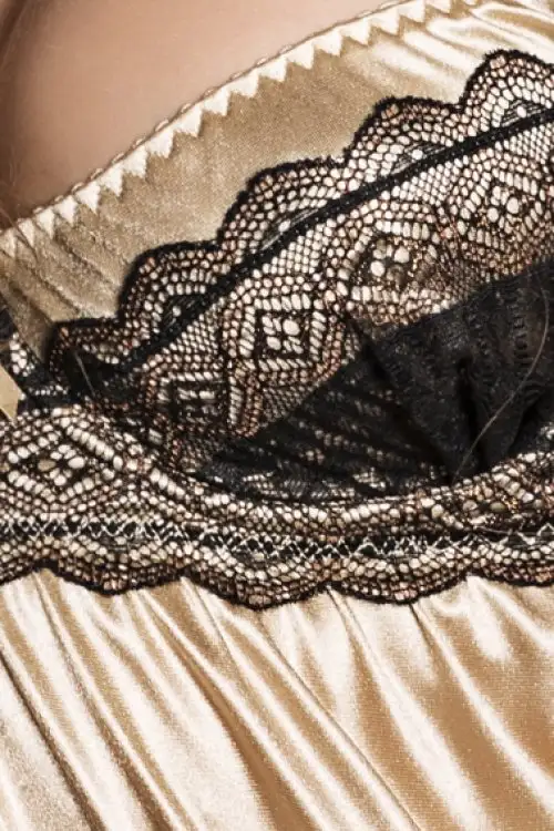 Всегда мечтали стать актрисой? В золотом платье-сорочка SHARON CHEMISE от Passion, вы станете сексуальней всех голливудских звёзд. Главное - уверенность в себе! Берите в оборот своего мужчину и ночь будет очень жаркой. Шикарный пеньюар сделан из  золотого атласа, а откровенный лиф оздоблен красивым черным итальянским кружевом.