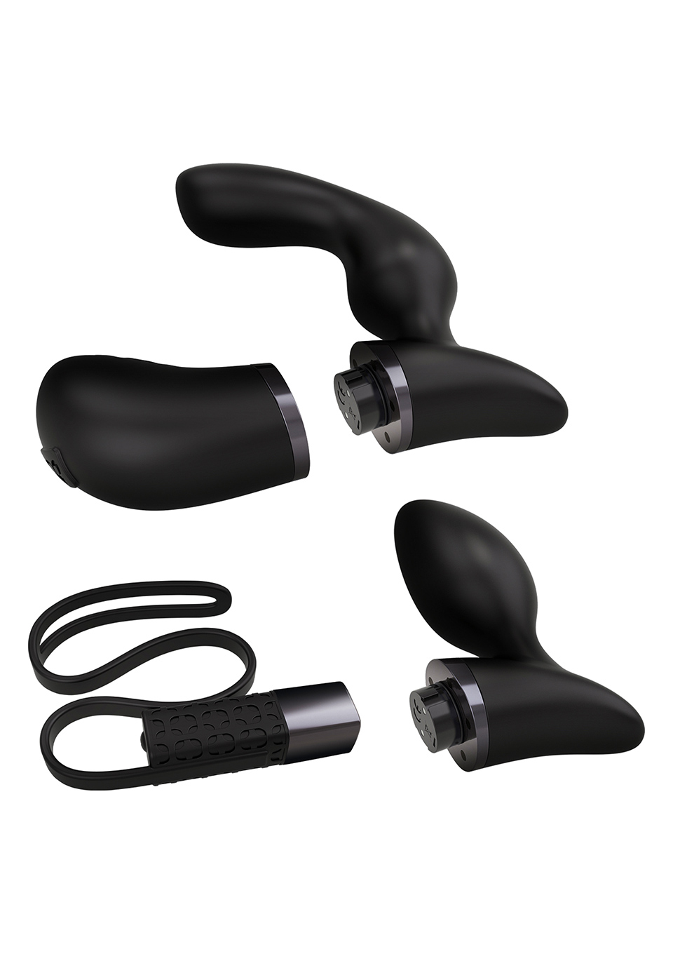 Набор из 2-х сменных насадок: массажера простаты и анальной пробки. Имеет ребристую поверхность, 10 режимов вибрации и пульсации. Материал - силикон. Страна производитель - Великобритания.