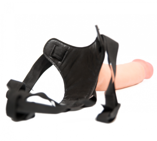 Удобная сбруя надежно удерживает игрушку на месте, регулируемые ремешки позволяют одевать страпон на большинство стандартных фигур (до 120 см). Даже, если вы будете двигаться очень интенсивно, хернесс останется там, где положено. Мягкая накладка из искусственной кожи, нежно прилегает к половым органам, не натирая их, не оставляя следов.