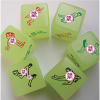 В игре также есть два набора игральных костей: один набор пронумерован от 1 до 6, а другой набор имеет символы на каждой стороне. Игроки бросают кубики, чтобы определить, какую карту они возьмут из колоды. Это добавляет элемент случайности, что делает его еще более захватывающим!