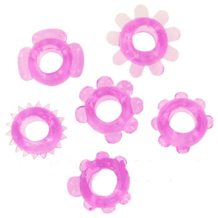 Набор гелевых эрекционных насадок JOY RINGS PINK состоящий из шести штук. Цвет розовый.