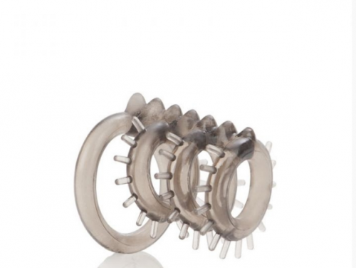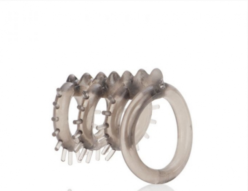 Насадка состоит с 3 эластичных колец, располагающихся вокруг члена и одного кольца диаметром побольше, которое надевается на мошонку.