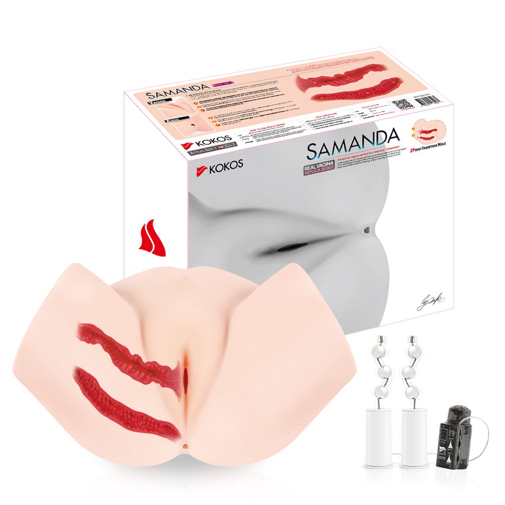 Мастурбатор-полуторс Kokos Samanda 2WayPlus с вибрацией и массажем, два входа: вагина и попка