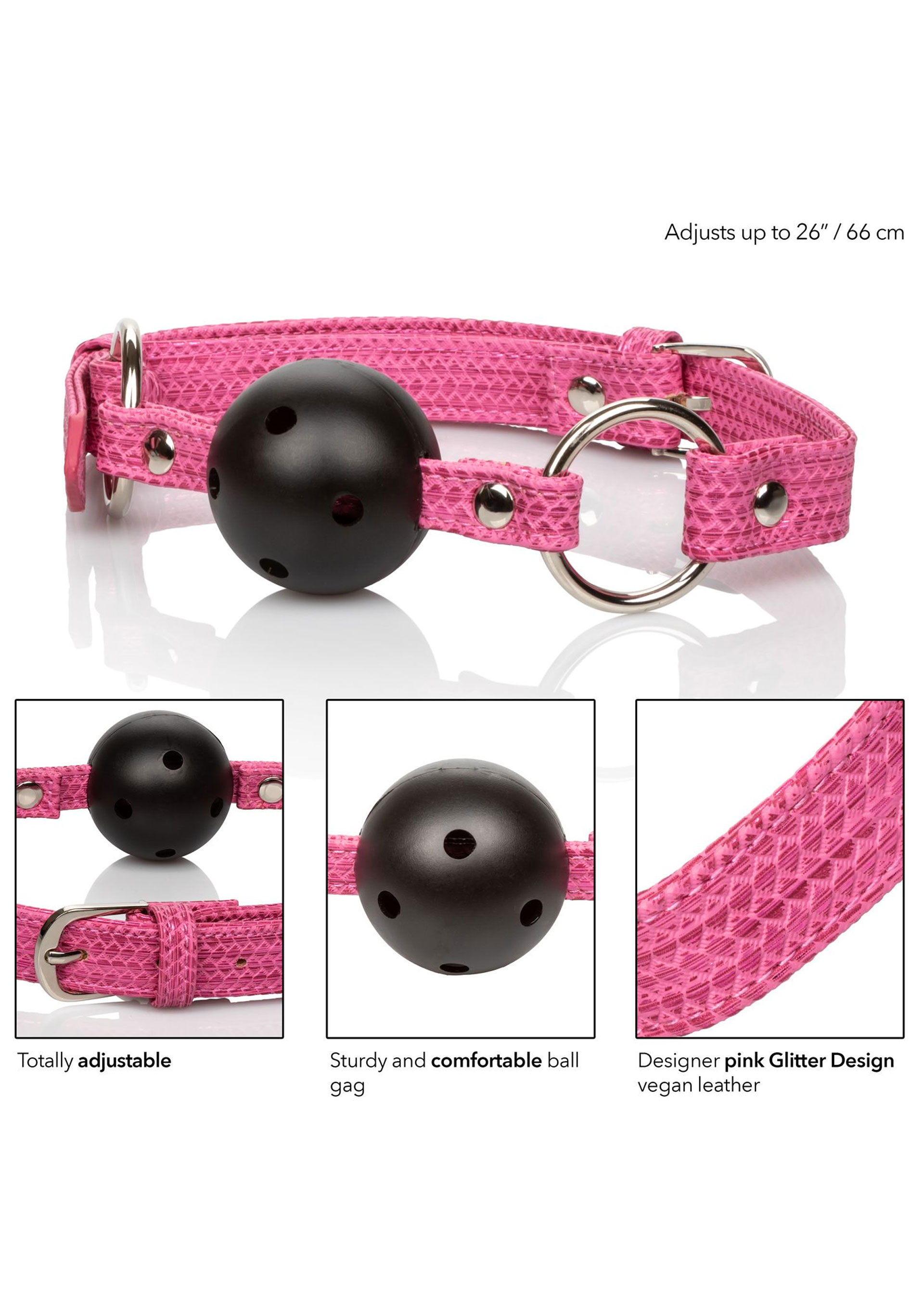 CalExotics Tickle Me Pink Ball Gag - это блистающий элемент эротических игр, отличный выбор для пар любящих смелые эксперименты, в том числе на проверку эротической покорности, а также для стильных фетишистов, заботящихся о восполнении своих потребностей в создании эстетичной визуальной картинки. Погрузитесь в свои самые смелые фантазии и позвольте себе быть капризными, приобретая оригинальный кляп с эффектным ремнем, имеющим дизайнерское оформление.