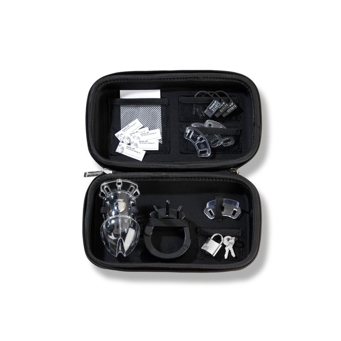 Mystim Pubic Enemy No 1 – Original – оригинальное интимное приспособление, которое понравится всем почитателям БДСМ-направления или сексуальных игр с доминантным распределением ролей. Данный аксессуар представляет собой «клетку» для полового члена. Прозрачная конструкция может менять размеры: длина и диаметр регулируются.