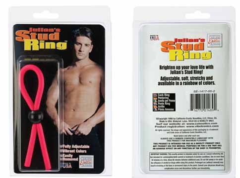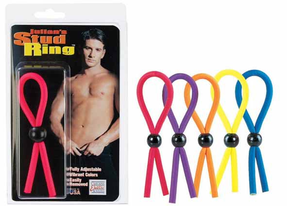 Эрекционное кольцо JULIAN'S STUD RING в виде петли. Эластичный латекс. Регулируется на любой размер. Общая длина - 13 см. Цена за 1 шт.