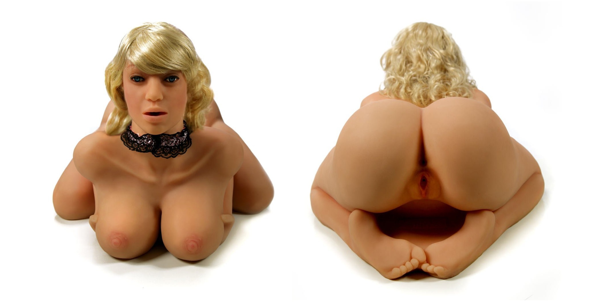 Кукла выполнена в манящей обольстительной позе с согнутыми коленями, которые подтянуты к животу. Такая поза предоставляет легкий доступ к каждому отверстию. Лицо куклы выглядит очень реалистично, ведь оно раскрашено вручную. Пухлые слегка приоткрытые губки будто призывают прикоснуться к ним членом и проникнуть глубже в рельефную глотку.
